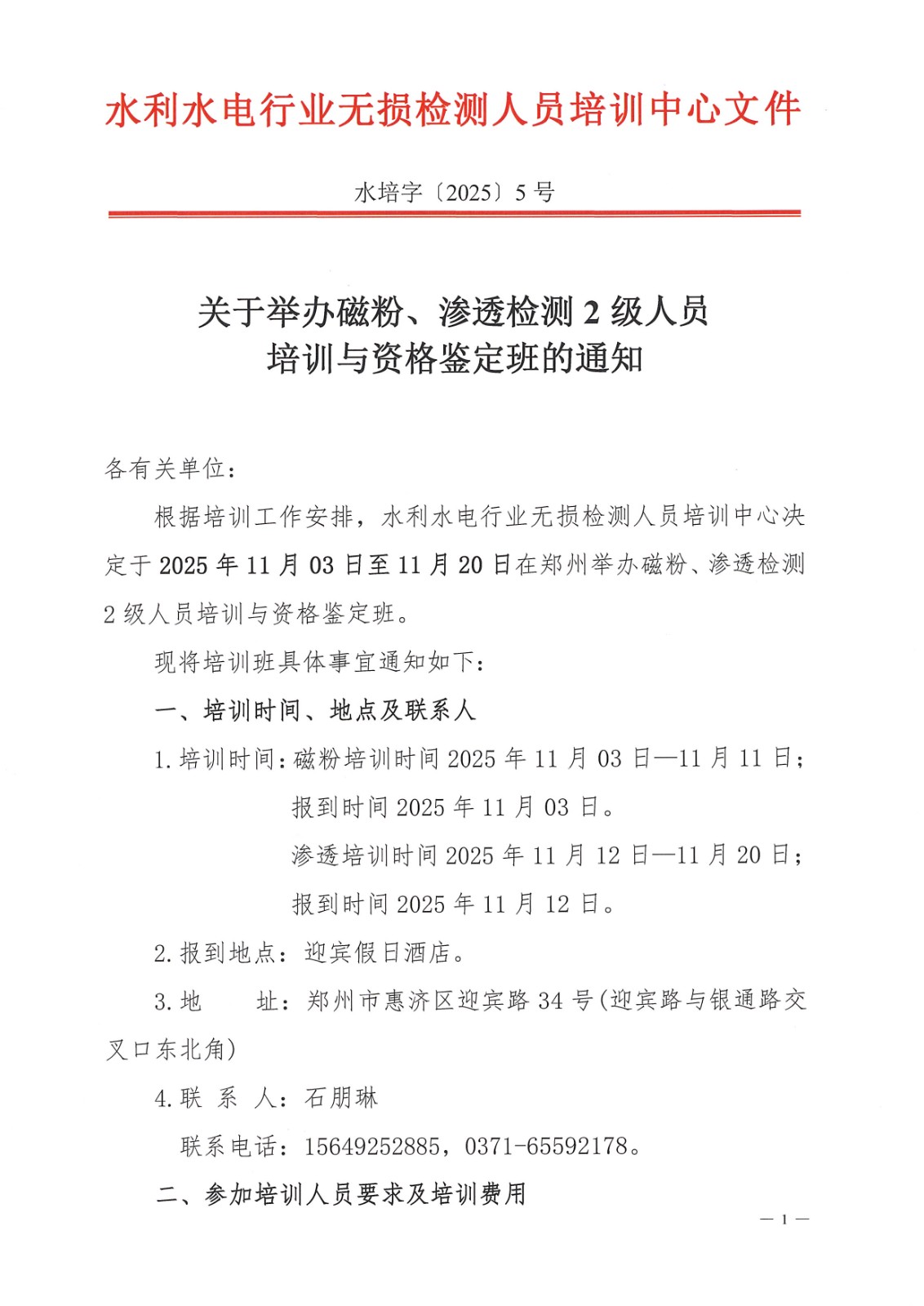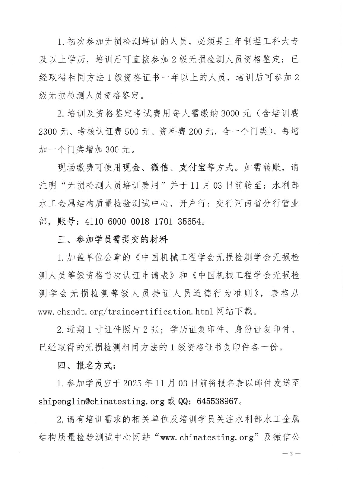 关于举办磁粉、渗透检测2级人员培训与资格鉴定班的通知
