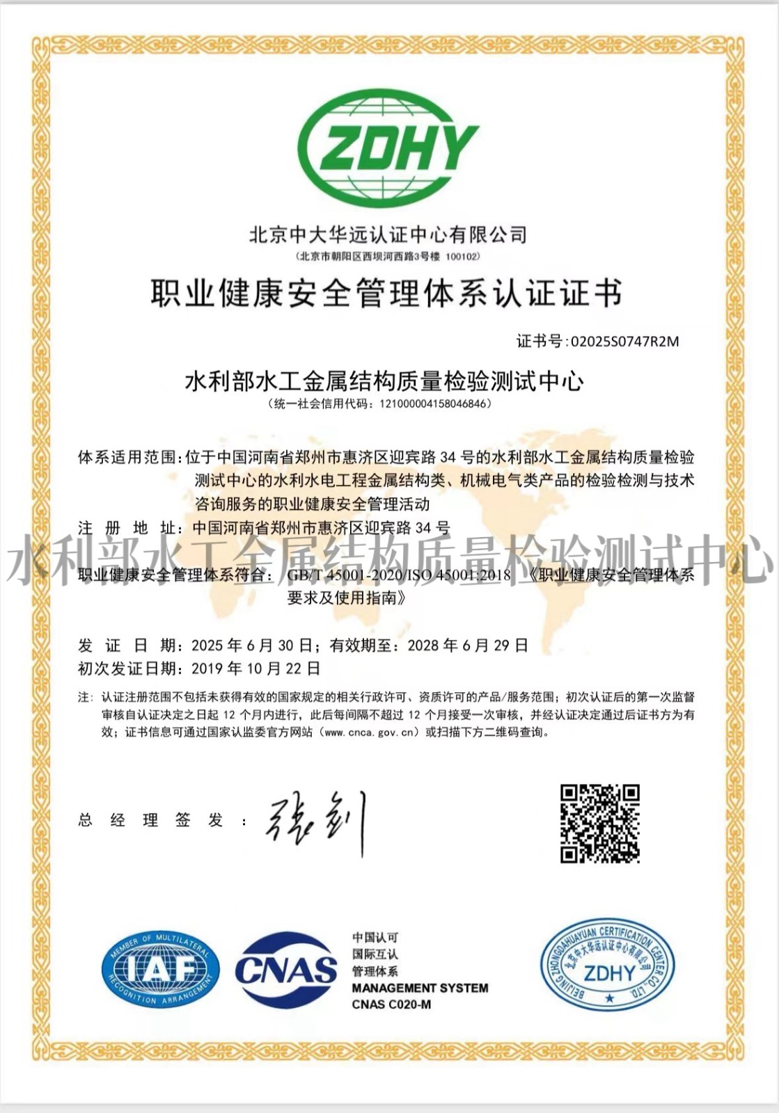 质量管理体系认证证书、环境管理体系认证证书、职业健康安全管理体系认证证书